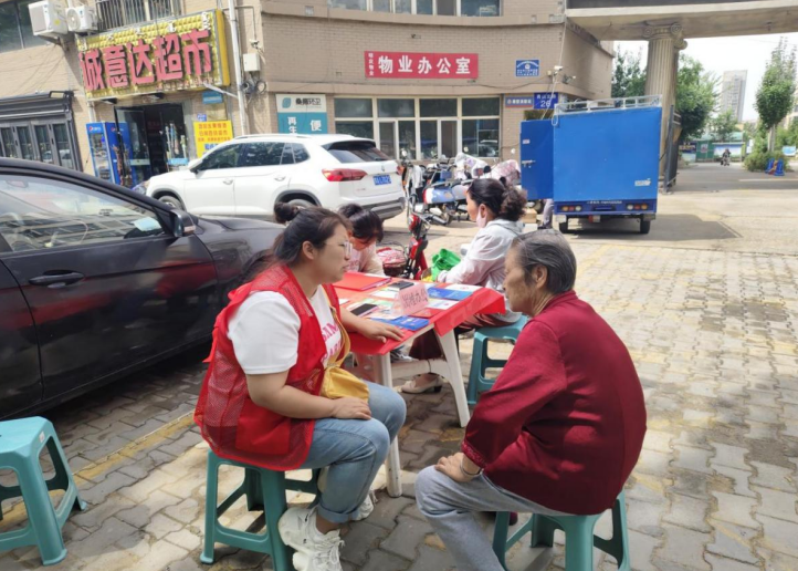 每周四是社区出摊办公的日子,社区工作人员到各自的小区进行出摊办公,可以让居民们不出小区就能办理业务。居民出来遛个弯的时间就可以根据每家不同情况普及各类的惠民政策。包括临时救助、医疗报销、残疾人补贴、4050补贴等。
